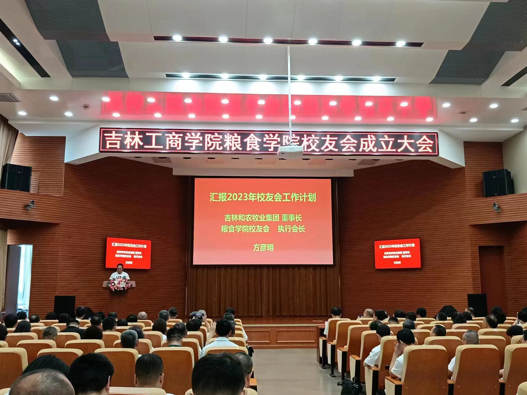 學(xué)校黨委副書記、校長張?jiān)浇埽h委副書記杜希剛,副校長徐文出席大會。學(xué)校校友工作辦公室、各職能部門與教學(xué)單位主要負(fù)責(zé)人相關(guān)代表、糧食學(xué)院全體教職員工、來自全國各地的優(yōu)秀校友和在校學(xué)生代表共計(jì)180余人參加大會。吉林和農(nóng)牧業(yè)集團(tuán) 董事長方彥明先生當(dāng)選 吉林工商學(xué)院糧食學(xué)院第一屆校友理事會執(zhí)行會長。
